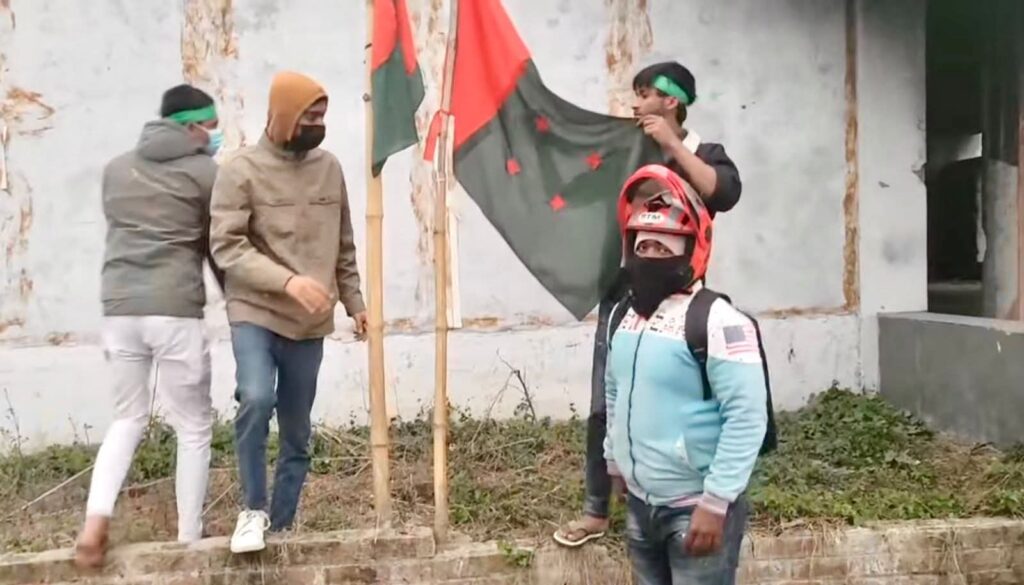 ফেসবুক পোস্টে রাশিক দত্ত লেখেন, রাজশাহী আওয়ামী লীগের কার্যালয়ে জাতীয় পতাকা ও দলীয় পতাকা উত্তোলন এবং জয় বাংলা- জয় বঙ্গবন্ধু স্লোগানে মুখরিত পার্টি অফিস। মো. আহসান উল হক মাসুদ, সাবেক সাংগঠনিক সম্পাদক, রাজশাহী জেলা আওয়ামী লীগ, জান্নাতুল ফেরদৌস পিয়া, পরিবেশ বিষয়ক সম্পাদক, রাজশাহী মহানগর ছাত্রলীগ, সাদমান সাকিব, কর্মী, রাজশাহী কলেজ ছাত্রলীগ, সাব্বির রহমান, কর্মী, রাজশাহী কলেজ ছাত্রলীগ। স্থানীয়রা জানান, কয়েকজন যুবক মুখে মাস্ক ও মাথায় হেলমেট পরে সেখানে আসেন। জয় বাংলা স্লোগান দিয়ে তারা পতাকা টাঙিয়ে দেন। এ সময় তাদের হাতে শেখ মুজিবুর রহমান ও শেখ হাসিনার ছবি ছিল। কিছুক্ষণ পর তারা চলে যান।